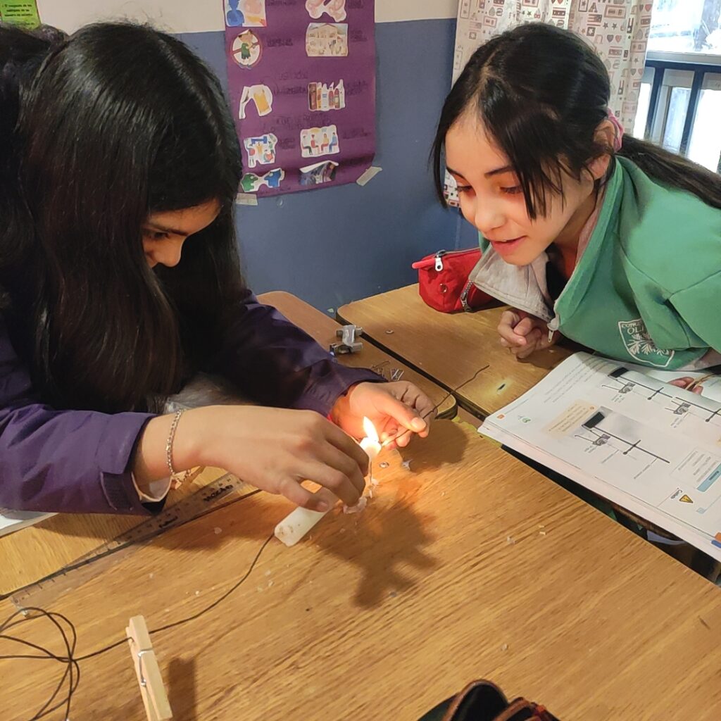 Los estudiantes de 6° básico, guiados por su profesora Victoria Laurie, realizaron un experimento siguiendo los pasos del método científico para explorar la transferencia de energía (calor). La actividad, que capturó la atención y concentración de los estudiantes, los mantuvo expectantes ante los resultados.