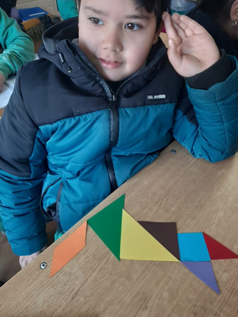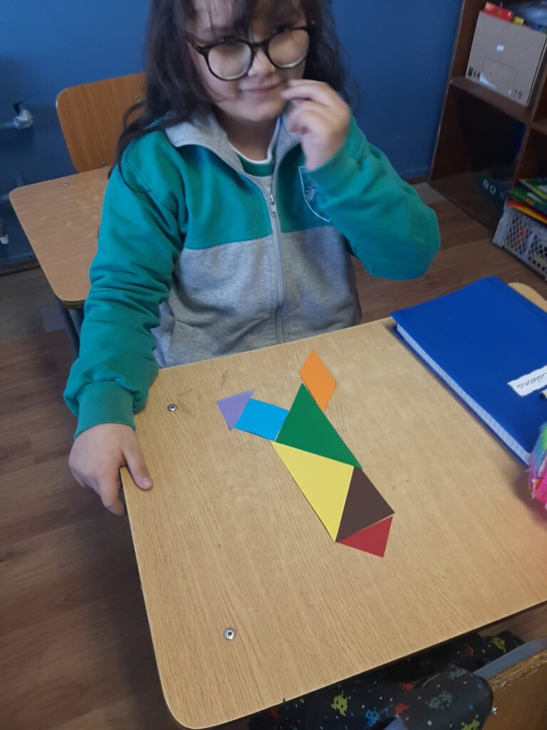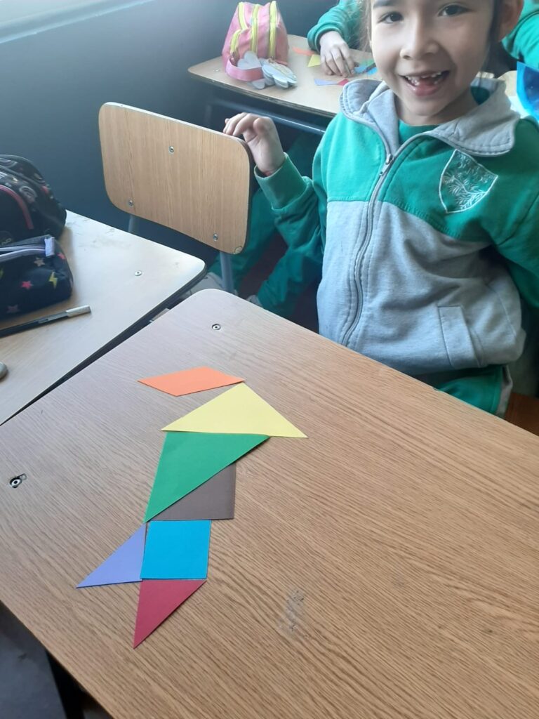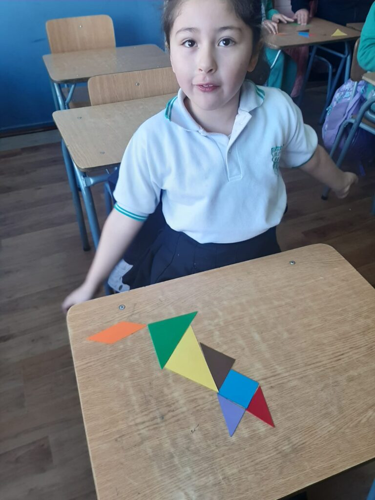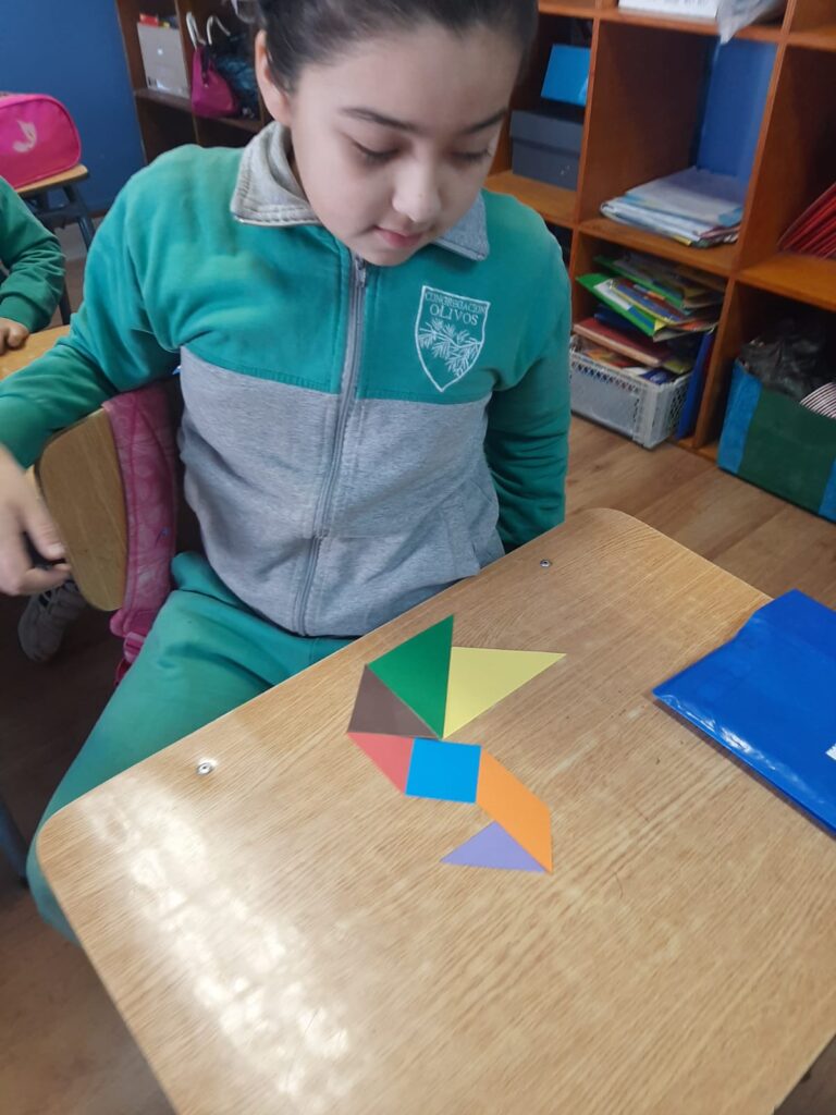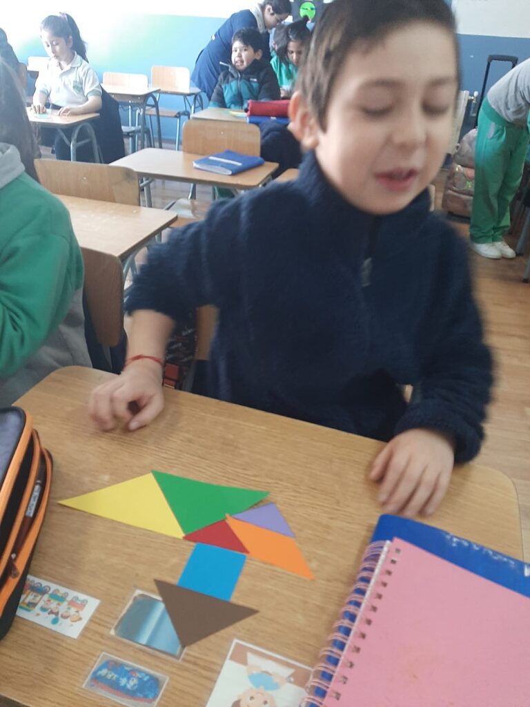En nuestras clases de Matemáticas, los estudiantes de 2° básico se adentraron en el fascinante mundo del Tangrama, un antiguo rompecabezas geométrico. Como parte de los objetivos de la asignatura, los alumnos conocieron esta herramienta, que consta de siete piezas geométricas con las que pueden formar diferentes figuras.