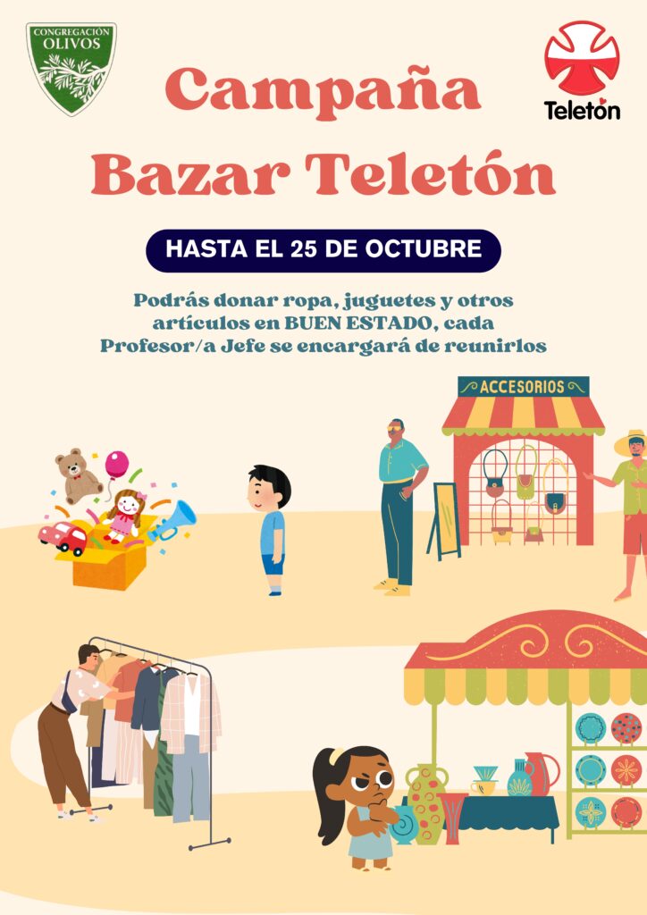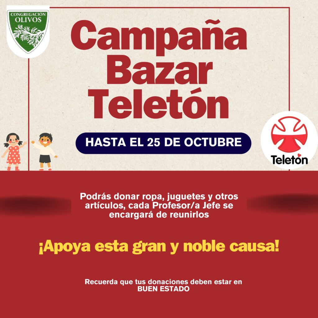 Invitamos a toda nuestra comunidad a participar en la recaudación de artículos en buen estado, que serán reunidos por cada profesor jefe hasta el 25 de octubre. Estos objetos serán utilizados para realizar un bazar solidario, donde se pondrán a la venta, y todos los fondos recaudados irán en beneficio de la Teletón.