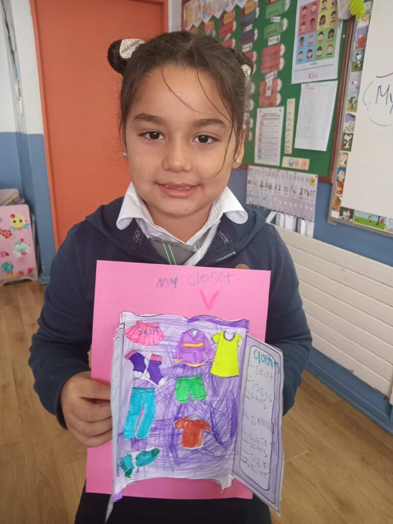En el marco de la unidad Clothes, los estudiantes de 2° básico desarrollaron una evaluación de carácter práctico, creando su propio closet con diversas prendas de vestir.