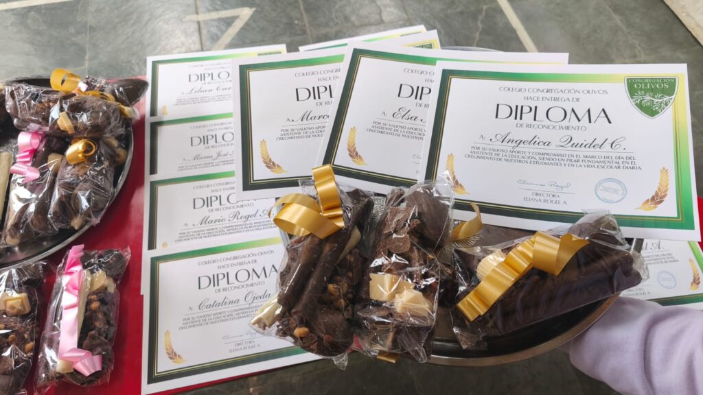 El Centro de Alumnos se sumó con un gesto muy especial, haciendo entrega de un reconocimiento a cada uno de nuestros asistentes. Por su parte, el colegio los distinguió con un diploma y un detalle dulce en símbolo de gratitud, mientras que el Centro General de Padres y Apoderados preparó un hermoso cóctel para compartir en un ambiente de afecto y camaradería.
