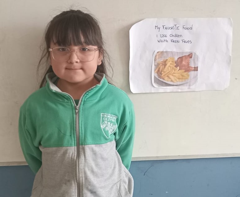 Los estudiantes de 1° básico, guiados por la profesora Mabel Durán, realizaron una actividad muy especial en sus clases de inglés. Como parte de la Unidad 4, titulada «My Favourite Food», los niños y niñas llevaron a cabo presentaciones orales en las que compartieron con entusiasmo cuál es su comida favorita.