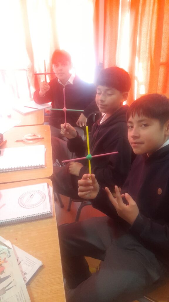 Trabajando en grupos, los estudiantes construyeron estos ángulos y luego registraron sus resultados en sus cuadernos, consolidando sus conocimientos de forma práctica y divertida.