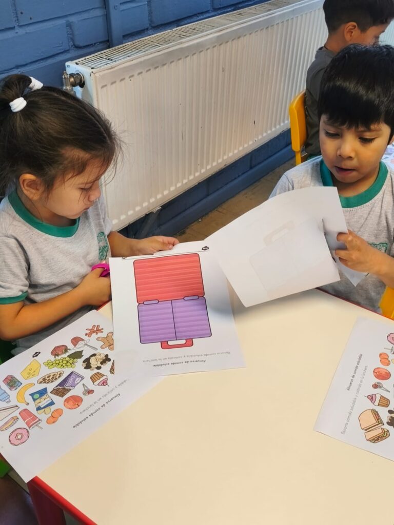 En esta última sesión, los estudiantes se transformaron en verdaderos exploradores de la vida saludable, identificando conductas de alimentación que favorecen su crecimiento y energía diaria. A través de una entretenida y significativa manualidad, crearon su propia “lonchera saludable”, seleccionando y pegando aquellos alimentos que pueden incluir en su colación, como frutas, lácteos y opciones nutritivas.