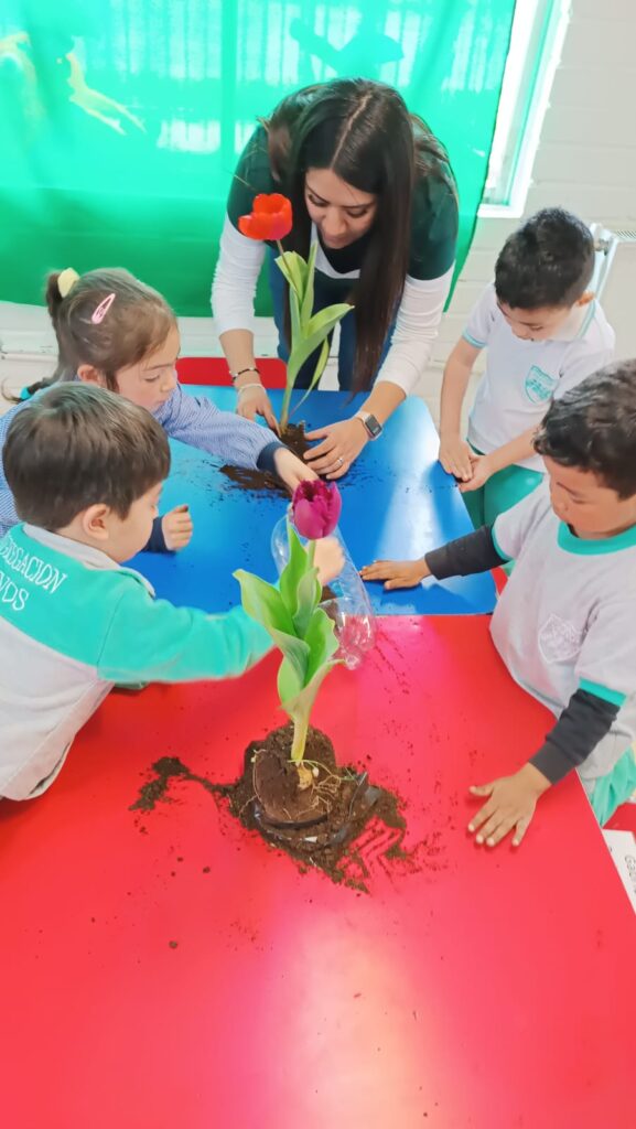 Para fortalecer esta experiencia, los pequeños transplantaron una planta a una botella reciclada, reforzando el valor de la reutilización y el cuidado del medio ambiente. Esta actividad no solo desarrolló en ellos habilidades de motricidad fina al manipular el suelo y la planta, sino que también les inculcó el sentido de responsabilidad y la importancia de proteger la naturaleza a través de pequeños actos cotidianos.