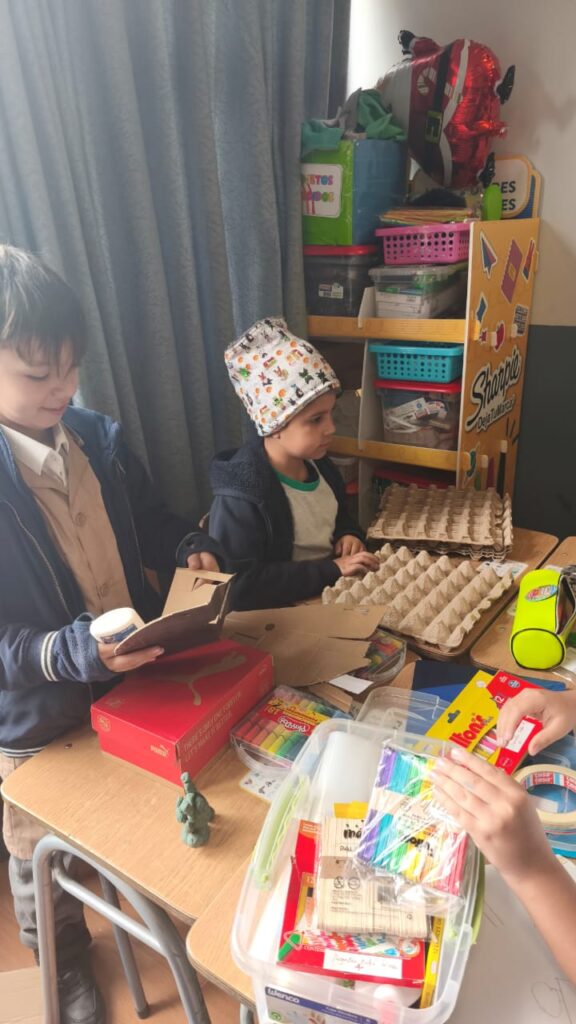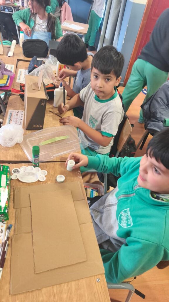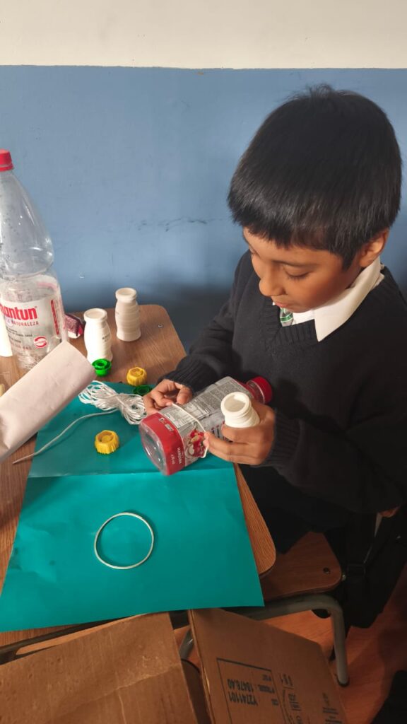 Utilizando materiales reciclados, cada estudiante comenzó a planificar, diseñar y dar forma a sus ideas, explorando además el uso de herramientas y el trabajo manual.