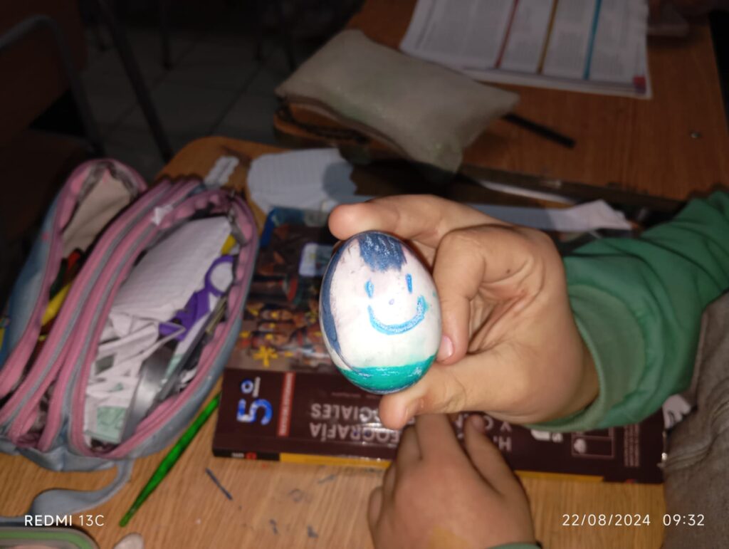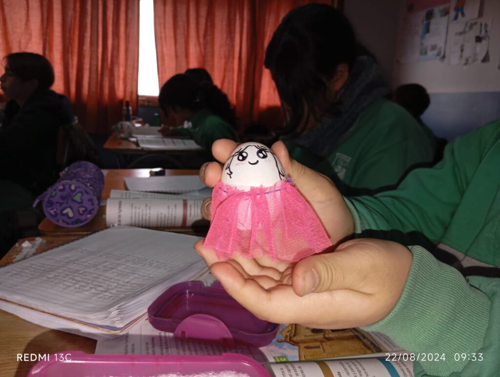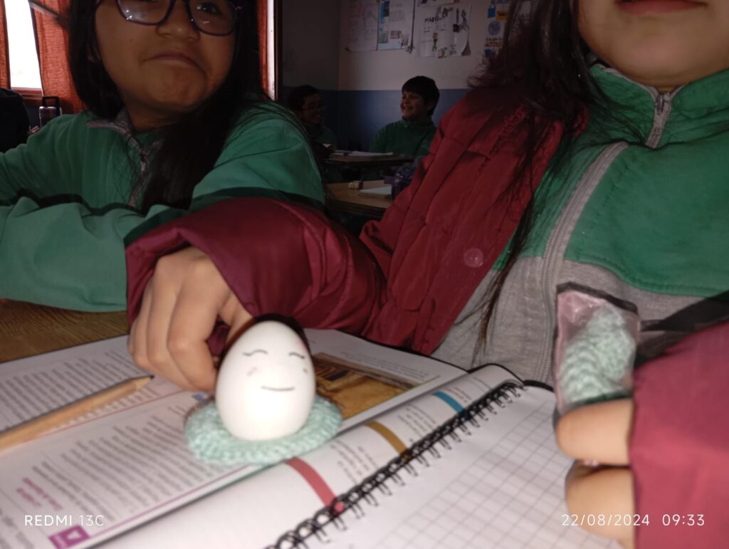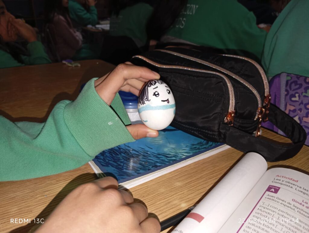 Para poner en práctica lo aprendido, se les planteó un desafío especial: cuidar un huevo durante 24 horas. Los estudiantes personificaron y protegieron sus huevos, entendiendo que sus acciones pueden tener impactos tanto positivos como negativos.