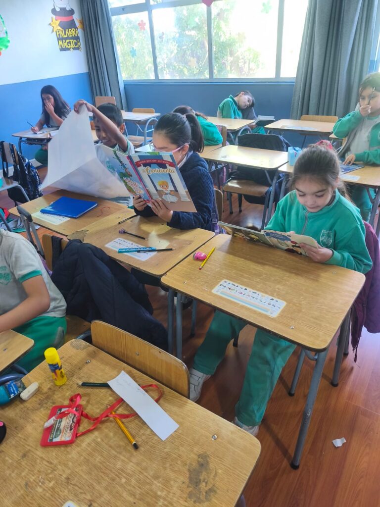Con entusiasmo, los niños y niñas leen de manera voluntaria y concentrada, demostrando que el hábito lector se construye día a día, cuando se brinda el tiempo, el espacio y la motivación adecuada.